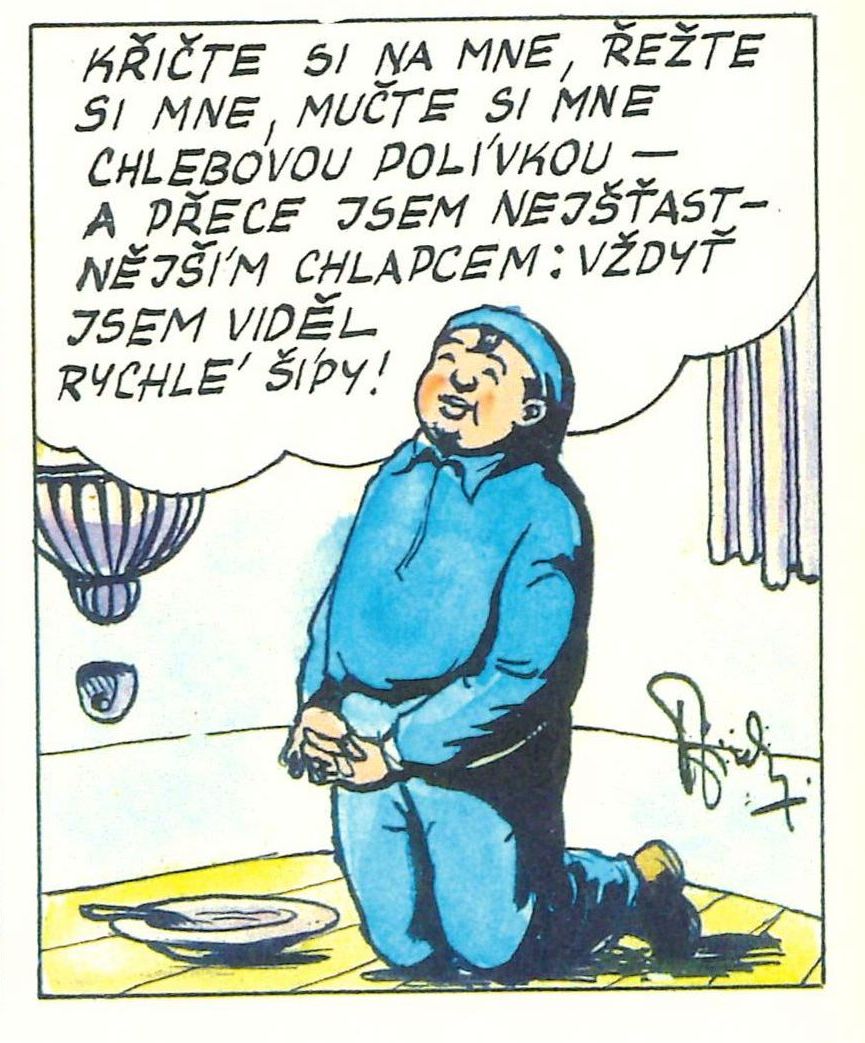 Křičte si na mne, řežte si mne, mučte si mne chlebovou polívkou – a přece jsem nejšťastnějším chlapcem: vždyť jsem viděl Rychlé šípy!